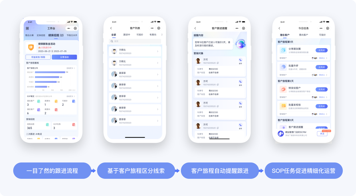 通过包括出单系统,门店助手(员工、店总),绩效考核、企微机器人群控,喜报、战报等系统功能支持提升销售效率