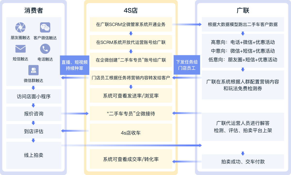 以客戶反馈、业务场景发现及满足车用户个性化需求的产品服务,通过用户洞察为4S店客户提供线上线下一体化营销服务